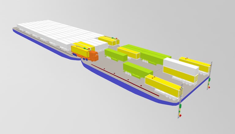 SPPEE modules are electrically charged at terminals supplied with green energy and loaded onto ferries.
