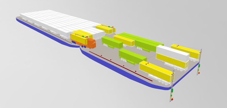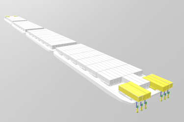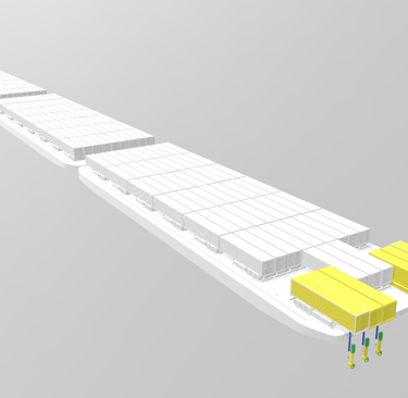 Os módulos SPPEE são carregados eletricamente em terminais abastecidos com energia verde e embarcados nas balsas.